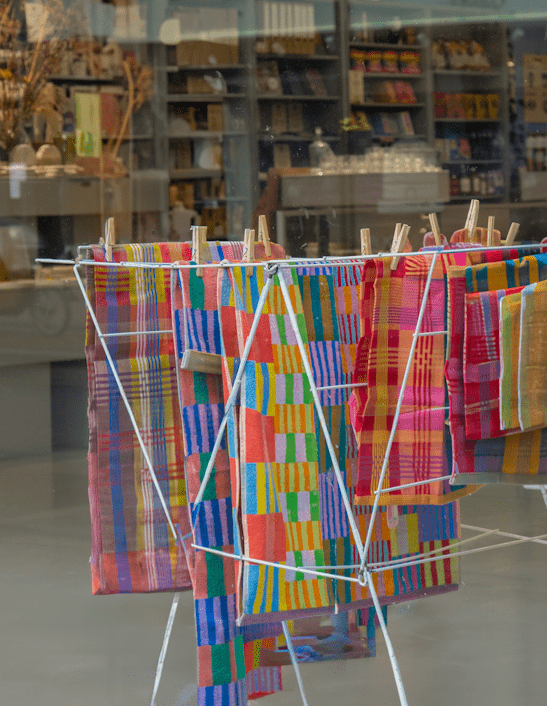 Met de kleurrijke textiellijn Odds & Ends van Foekje Fleur krijgt textielafval een tweede leven. Wanneer fabrieken garens verven om mee te weven maken ze altijd een beetje extra, maar die blijven vaak genoeg ongebruikt. Met overgebleven garens uit de productie van eerdere collecties worden unieke stoffen gewoven, waarbij verspilling plaats maakt voor creativiteit. Ze zijn zo gewoven, dat er zo min mogelijk textiel afval is.