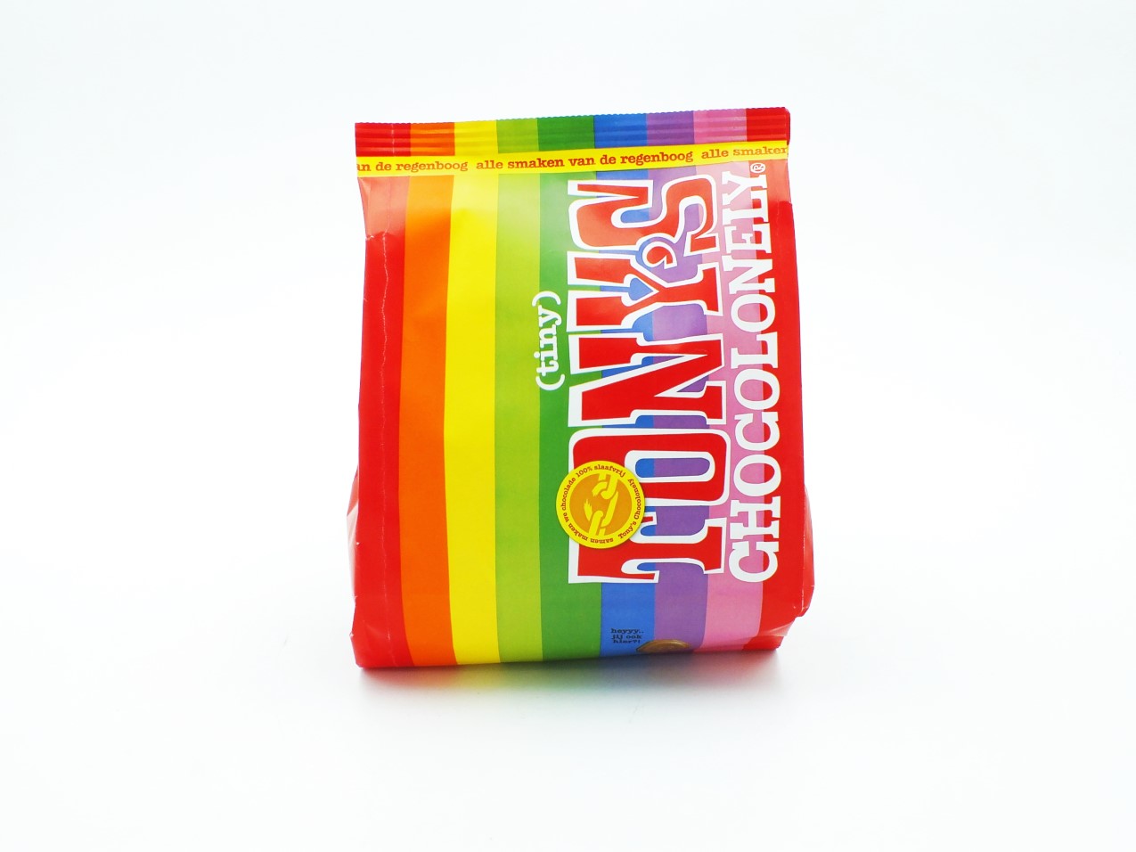 In dit zakje zitten Tiny Tony’s in een mix van 8 smaken (melk, melk karamel zeezout, melk noga, melk hazelnoot, puur amandel zeezout, puur, donkere melk pretzel en wit framboos knettersuiker).